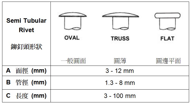規格: 半空心鉚釘 / 抽芯鉚釘